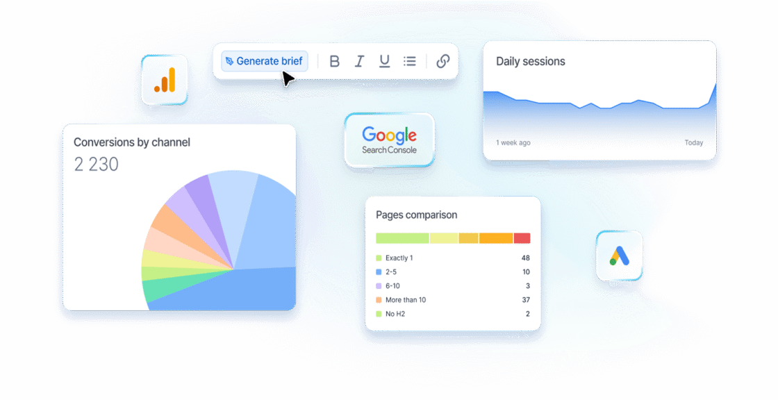 Gestisci la tua crescita con l’unica app che unisce SEO, Paid, Content e IA.